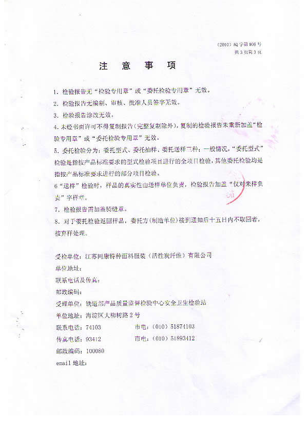 質量檢測報告